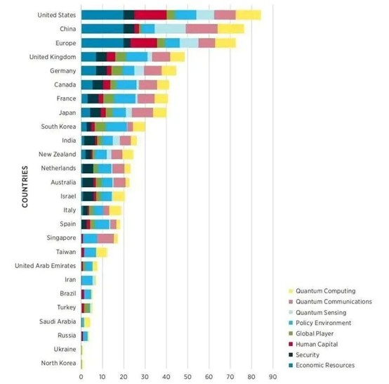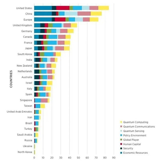 在量子技术领域,美国、中国和欧洲是主要竞争者。中国在量子传感和量子通信领域表现突出;而美国则在量子计算的研究方面暂时领先。