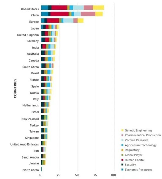 在所有技术领域中,生物技术是中国与美国差距最小的赛道。报告明确指出:“中国在生物技术领域拥有最有可能超越美国的机会。”